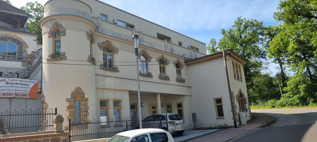 Als die Villa Felseneck im Jahr 1906 gebaut wurde,hat der Bauherr Lorenz Freitag unterhalb der Villa ein Kutscherhaus anlegen lassen. Hier lebten Pferde und Kutscher quasi unter einem Dach. Bis zuletzt konnte man in dem teilweise verfallenen Gebäude noch die alten Pferdetränken vorfinden. Nun ist auf dem historischen Fundament ein neues Gebäude mit acht weiteren Appartements mit moderner Ausstattung und barrierefreiem Zugang entstanden. Auch hier ist es Ihnen möglich, mit eingeschränkter Alltagskompetenz oder einem Pflegegrad Ihr Leben selber zu gestalten und zu genießen.